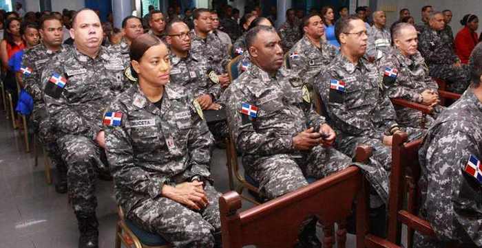 Santo Domingo Republica Dominicana. Oficiales generales pertenecientes al alto mando de la Policía Nacional, junto a decenas de miembros de…