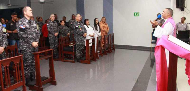 La Eucaristía estuvo encabezada por el subdirector general de la institución, general Juan Guzmán Badía, quien estuvo acompañado de los generales Andrés Cruz Cruz, Inspector general; Claudio González Moquete, director Central de Prevención, e José Isaías Santana Morillo, director de Operaciones Policiales.