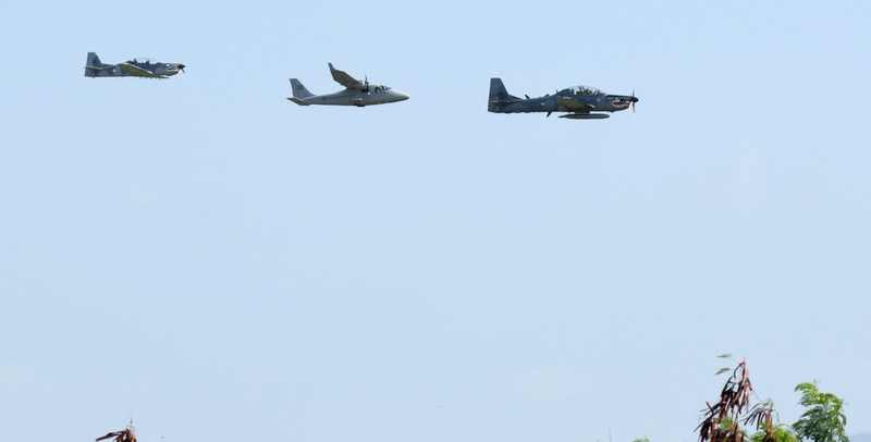 Durante el acto, un grupo de pilotos aviadores pertenecientes a los escuadrones de Combate y Rescate de la FARD, a bordo de las aeronaves A-28B Super Tucano, UH-1H HUEY, y TP-75 DULUS, las cuales estarán en servicio continúo apostadas en el Comando Sur de esta institución, realizaron vuelos de patrullaje en las periféricas de dicha base aérea y la zona fronteriza.