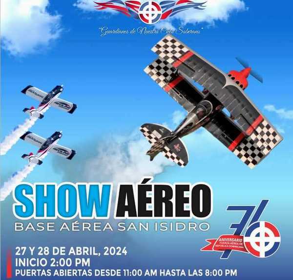 Santo Domingo Republica Dominicana. La Fuerza Aérea de República Dominicana, celebrará un gran show aéreo este próximo sábado 27 y domingo 28 de abril, en la Base Aérea San Isidro, a partir de las 02:00 pm, con puertas abiertas desde las 11:00 am, en el marco del 76 aniversario de la institución.