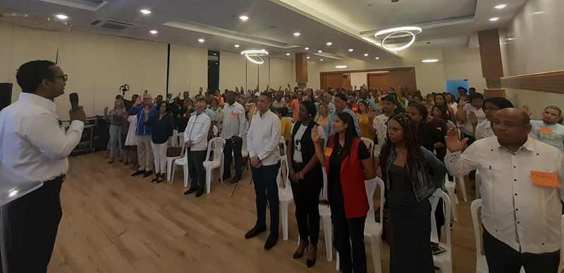 El acto se realizó en el salón de grandes eventos de la Plaza Moderna, en la avenida Fernández Domínguez, y contó con la participación del alcalde Manuel Jiménez, Manuel Salazar, María Teresa Cabrera, Carlos Pimentel, el empresario y expresidente de los Industriales de Herrera, Manuel Cabrera, comerciantes, presidentes de juntas de vecinos y dirigentes comunitarios de diferentes puntos de la circunscripción 3 de Santo Domingo Este, Boca Chica y Guerra.