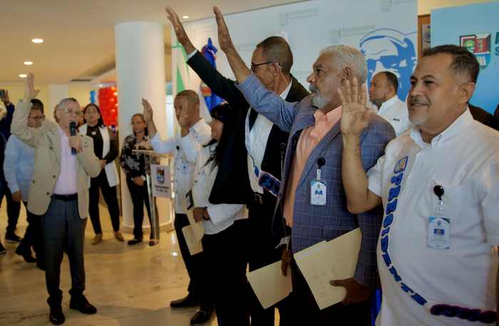 Durante un acto en el lobby del Palacio Municipal, los dirigentes comunitarios fueron juramentados por el Alcalde Manuel Jiménez, a los que recomendó enfrentar los distintos problemas sociales en unidad y armonía «Ya los problemas comunes de los sectores tienen una manera de enfrentarse de manera colectiva, quien no se organiza no avanza» resaltó el alcalde Jiménez.