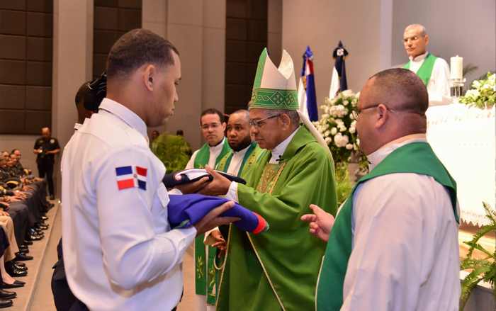 El auditorio de la Policía Nacional fue el escenario donde se realizó la ceremonia central, con una eucaristía presidida por monseñor Francisco Ozoria Acosta, Arzobispo Metropolitano de Santo Domingo.